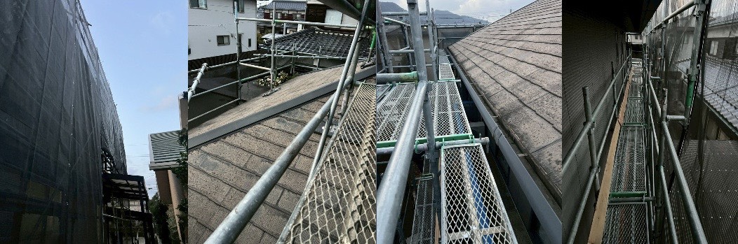 特に屋根まわりは勾配があり、作業性の確保が難しい箇所ではしっかりした足場があることで、安心して細部まで塗装作業が可能です💡