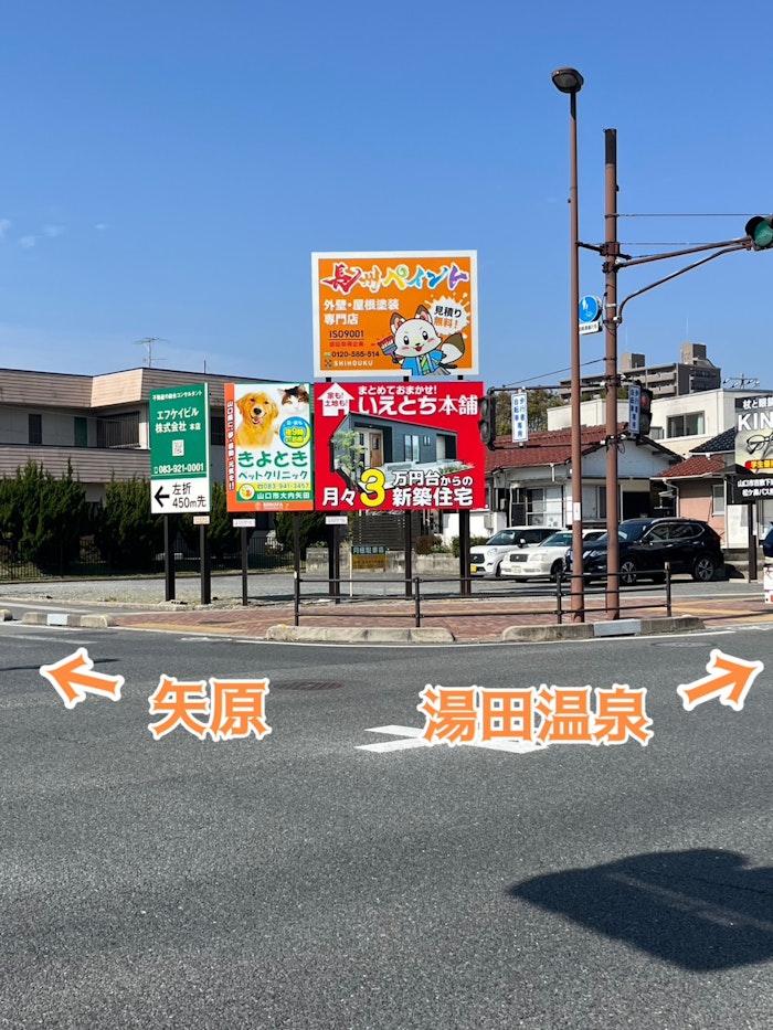 矢原方面や湯田温泉方面へ向かう車が多く通る場所で、交通量も多いため、多くの方の目に入る場所となっています‼️