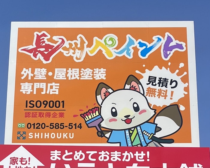 看板には長州ペイントのキャラクター【ぬり丸くん】を使用し、親しみやすく目に入りやすいデザインにしています🦊💕