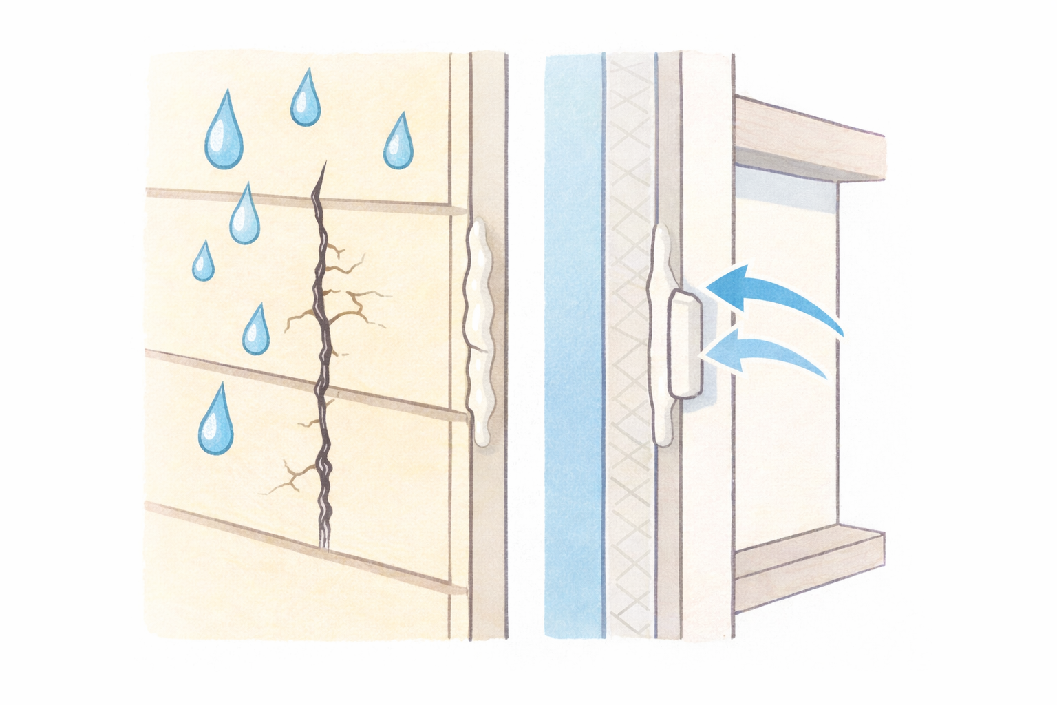 建物は温度変化や地震、振動でわずかに動くため、その動きに追従してひび割れや隙間の発生を防ぐ。