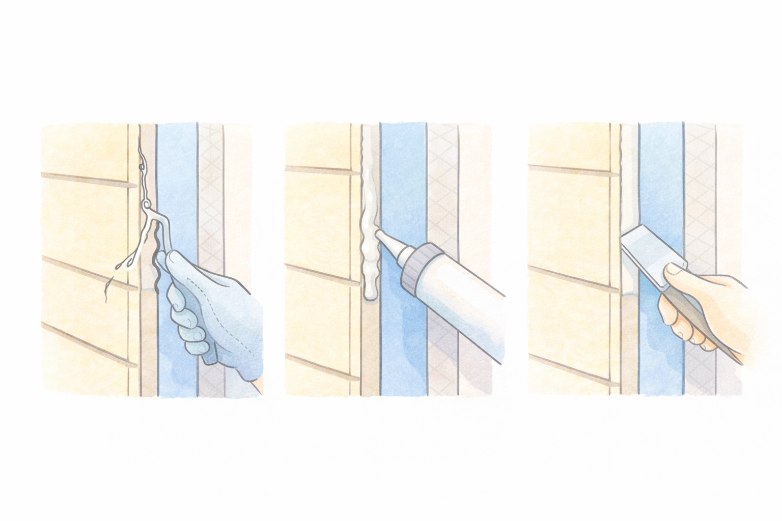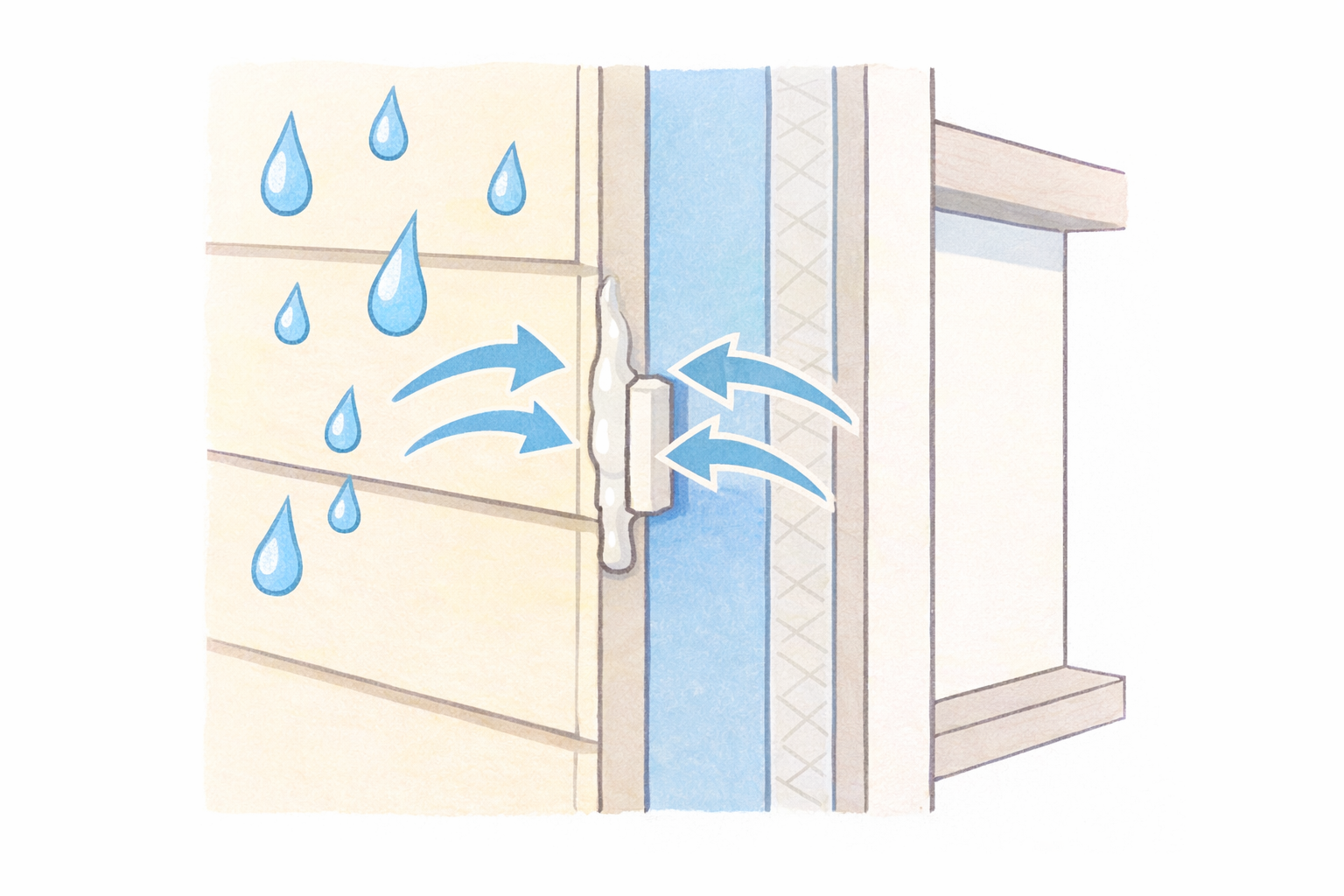 外壁や窓まわりのすき間から雨水が入るのを防ぎ、雨漏り・内部腐食・カビを防止する。